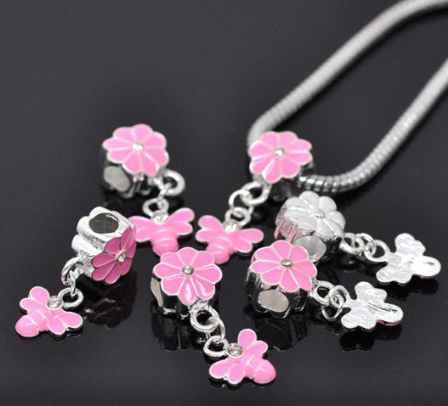 - Pink Enamel Flower Bail with Bee Charm Bead Compatible for Most European Snake Chain Bracelets