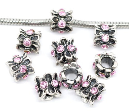 - Antique Silver Tone Pink Flower Rhinestone Charm Spacer Bead Fits Pandora Troll Chamilia Biagi Bracelet