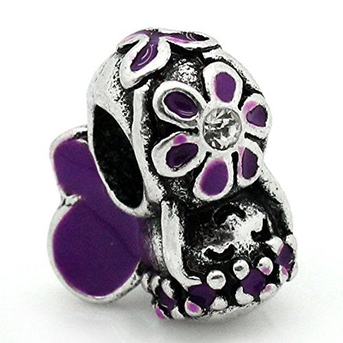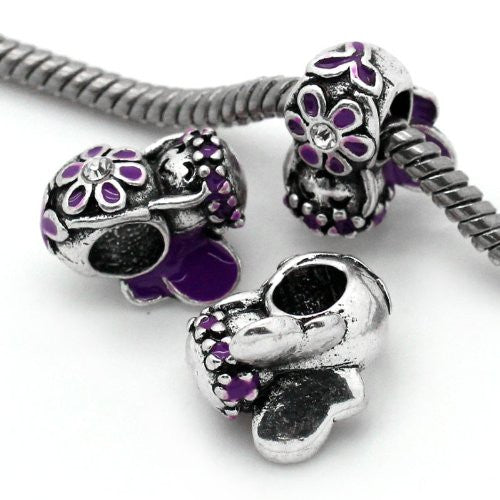 Purple Flower Fairy Charm European Bead Compatible for Most European Snake Chain Bracelet