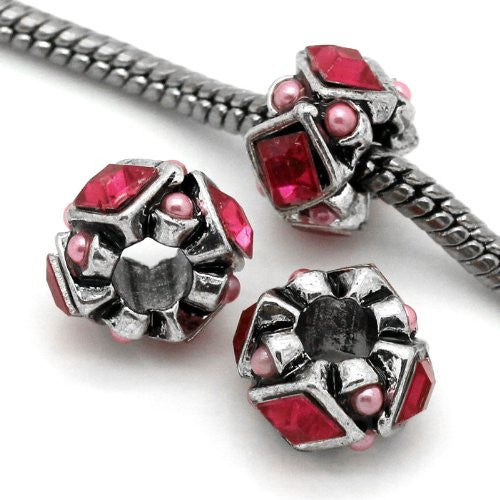 - Red Rhinestones Bead Charm Spacer Pandora Troll Chamilia Biagi Bead Compatible