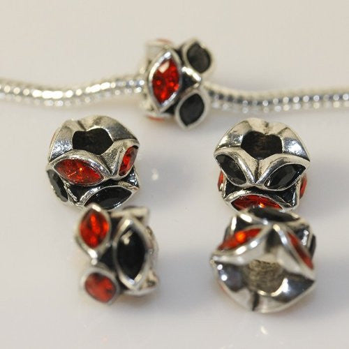 - Red with Black Color Created Crystals Charm Bead for snake Chain charm bracelets