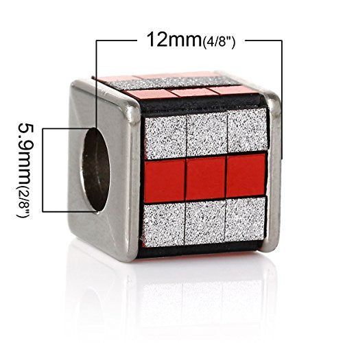 - Silver Tone "Red/White Cube Grid Pattern Charm" Spacer Bead Compatible For Most European Snake Chain Bracelets