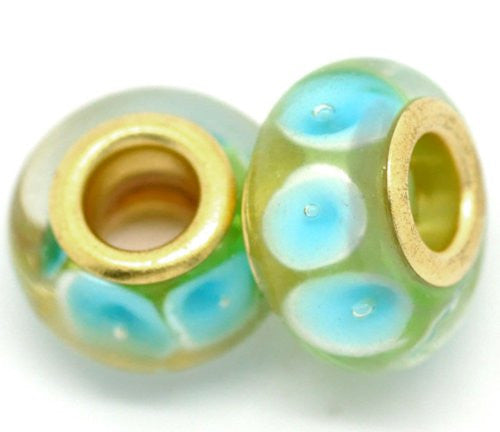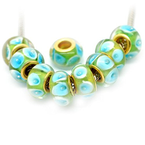 - Ten (10) Pack of Assorted Green and Blue Glass Lampwork, Murano Glass Beads for European Style Bracelet For Snake Chain Charm Bracelet (Styles You Will Receive Are Shown in Picture Assorted Random Mix 10 Beads)