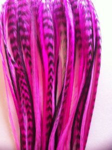 Home › Feather Hair Extensions › Glam up Your Hair with 8-10 Hot Pinks & Black Feather Hair Extension Bonded with 5 Salon Quality Feathers