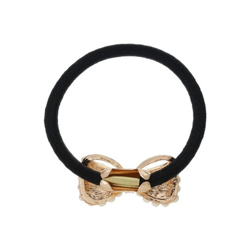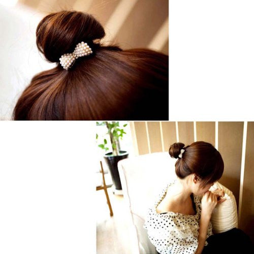 Home › Hair Accessories › Nylon Cirlce Ring Hair Band Ponytail Holder Black Acrylic Imitation Pearl Choose Your Style From Menu (Bowknot C)