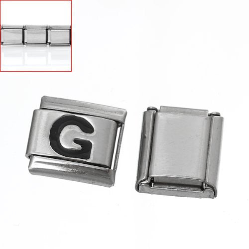 Home › Italian Charms › Italian Charm Bracelet Link Square Silver Tone Alphabet Letter (G)