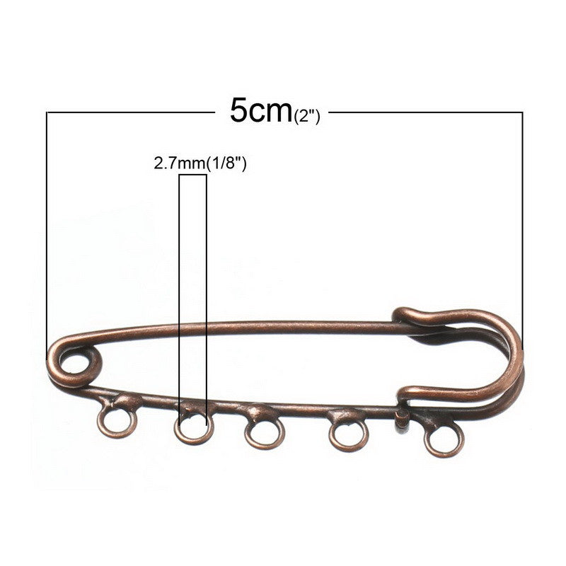Home › New Arrivals › Sexy Sparkles 10 Pcs Safety Brooches Pins Antique Copper 5 Loops 2"