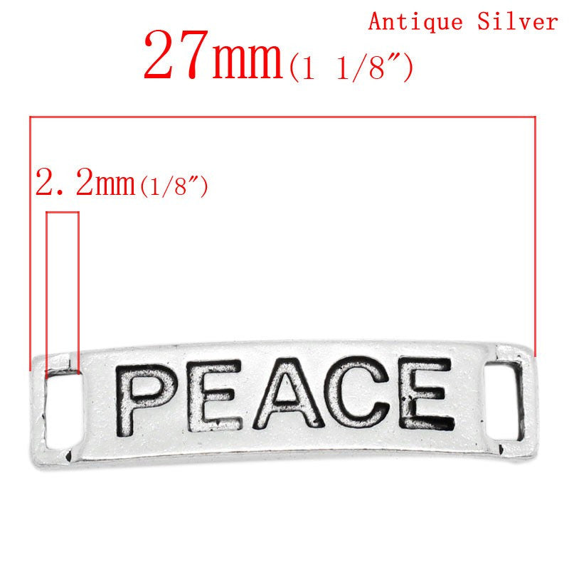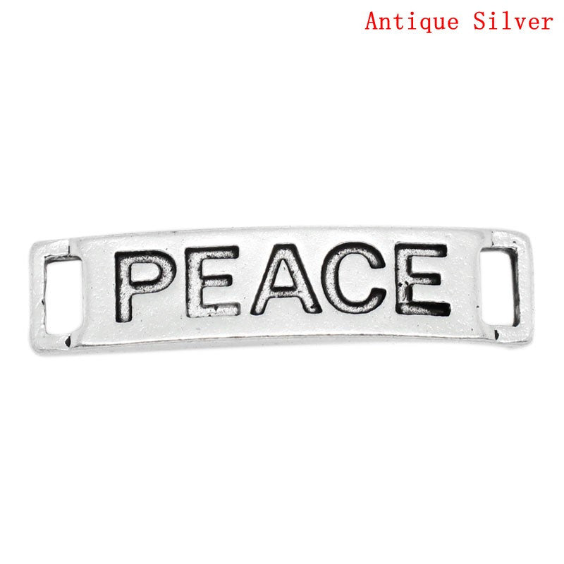 Home › New Arrivals › Sexy Sparkles 20 Pcs. Bracelet Connectors Findings Rectangle Curved Antique Silver "Peace" ...