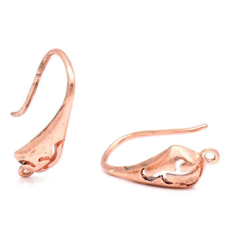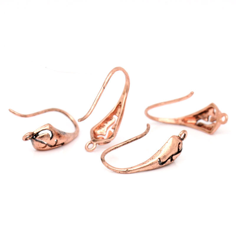 Home › New Arrivals › Sexy Sparkles 4 Pcs Earring Hooks w/ Loops Antique Copper Hollow Pattern 18mm