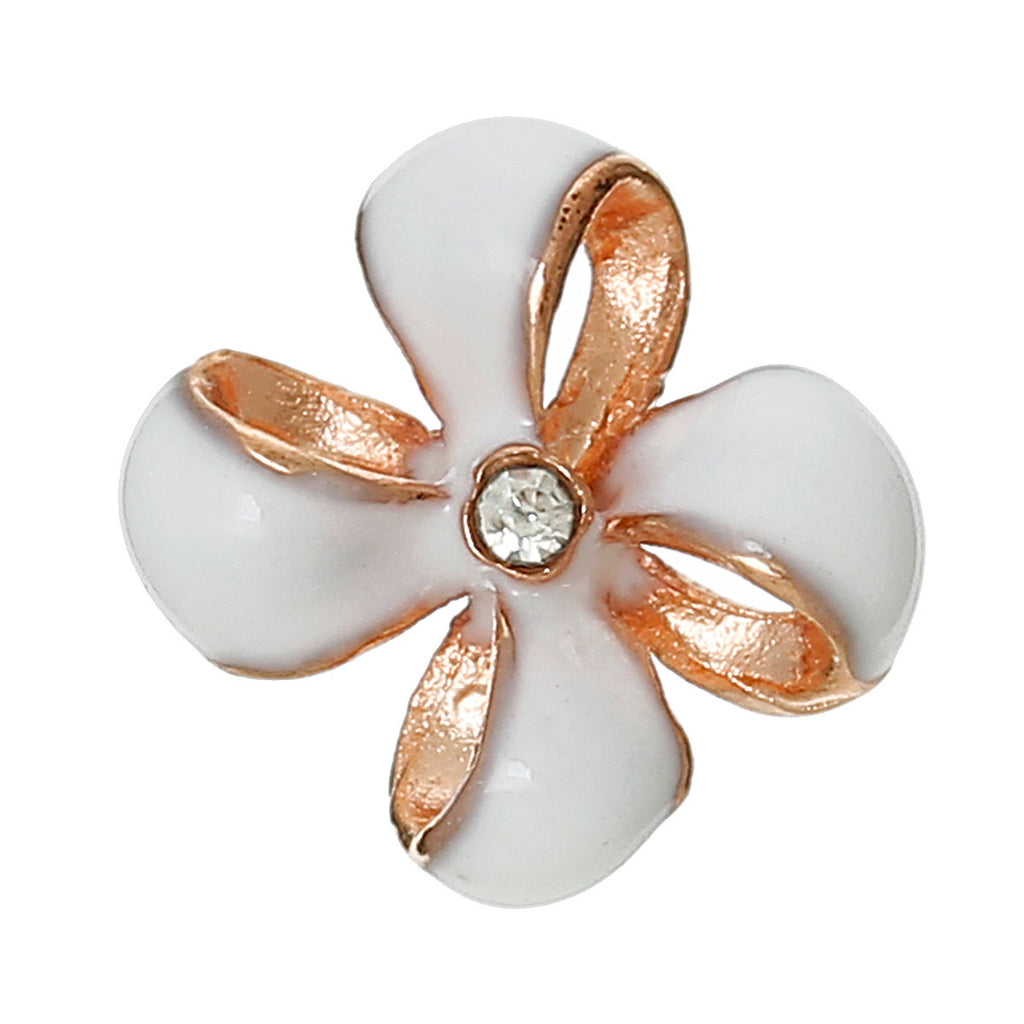 Home › New Arrivals › Sexy Sparkles 4 Pcs Enamel White Flower Embellishment Findings with Clear Rhinestone 12mm