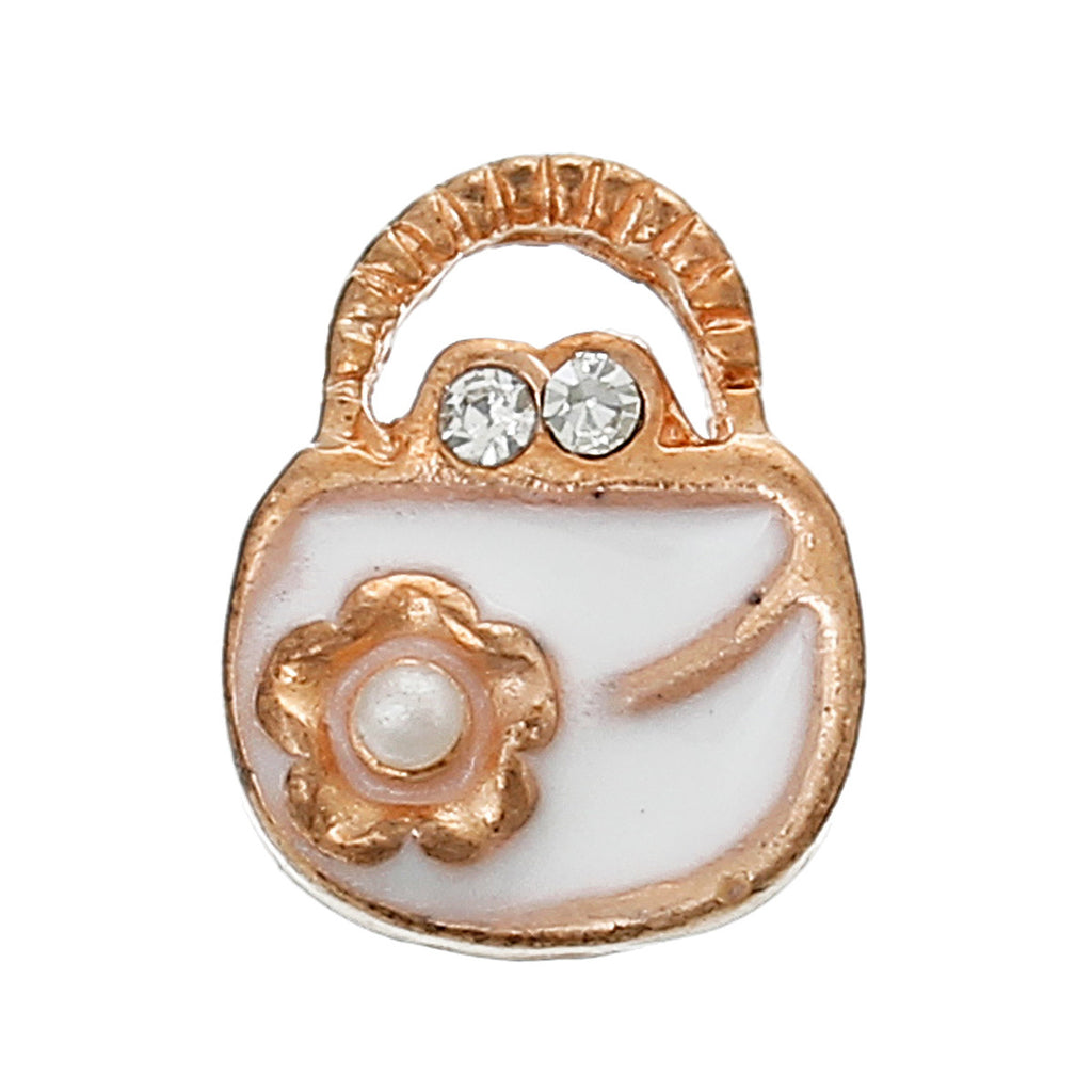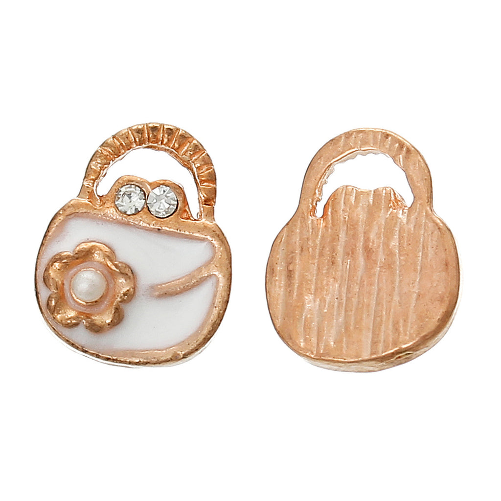 Home › New Arrivals › Sexy Sparkles 4 Pcs Enamel White Handbag Embellishment Findings with Clear Rhinestones Acry...
