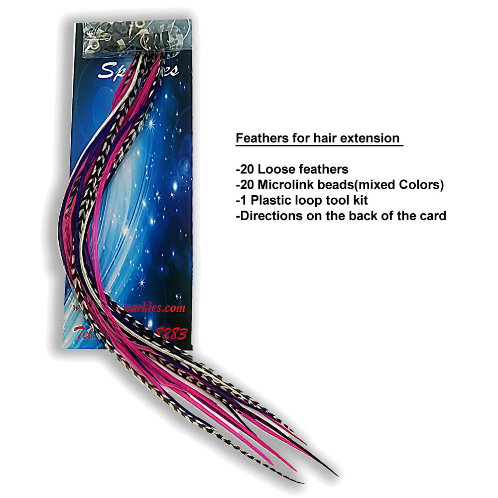 - Feather hair extensions are a gorgeous way to spice up your hairstyle! Pack includes 20 feathers and mixed microlink beads for attaching. These feathers are 100% real authentic rooster saddle feathers from the USA. They are 8-11 inches long (20-28cm) and can be washed and heat styled. Sexy Sparkles Feathers are used in salons around the USA and are of premium quality. These are a perfect gift for the girl in your life. Don't know what to get a teen or tween for their birthday? Popular and trendy