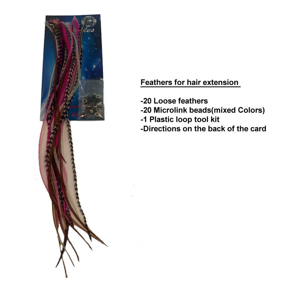 - Feather hair extensions are a gorgeous way to spice up your hairstyle! Pack includes 20 feathers and mixed microlink beads for attaching. These feathers are 100% real authentic rooster saddle feathers from the USA. They are 8-11 inches long (20-28cm) and can be washed and heat styled. Sexy Sparkles Feathers are used in salons around the USA and are of premium quality. These are a perfect gift for the girl in your life. Don't know what to get a teen or tween for their birthday? Popular and trendy