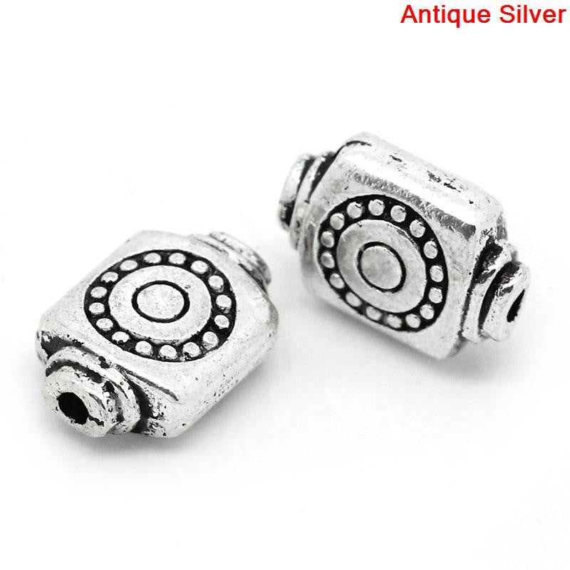 Home › New Arrivals › Sexy Sparkles 10 Pcs Silver Toned Rectangle Carved Spacer Bead 12x9mm, Hole: Approx 1.3mm