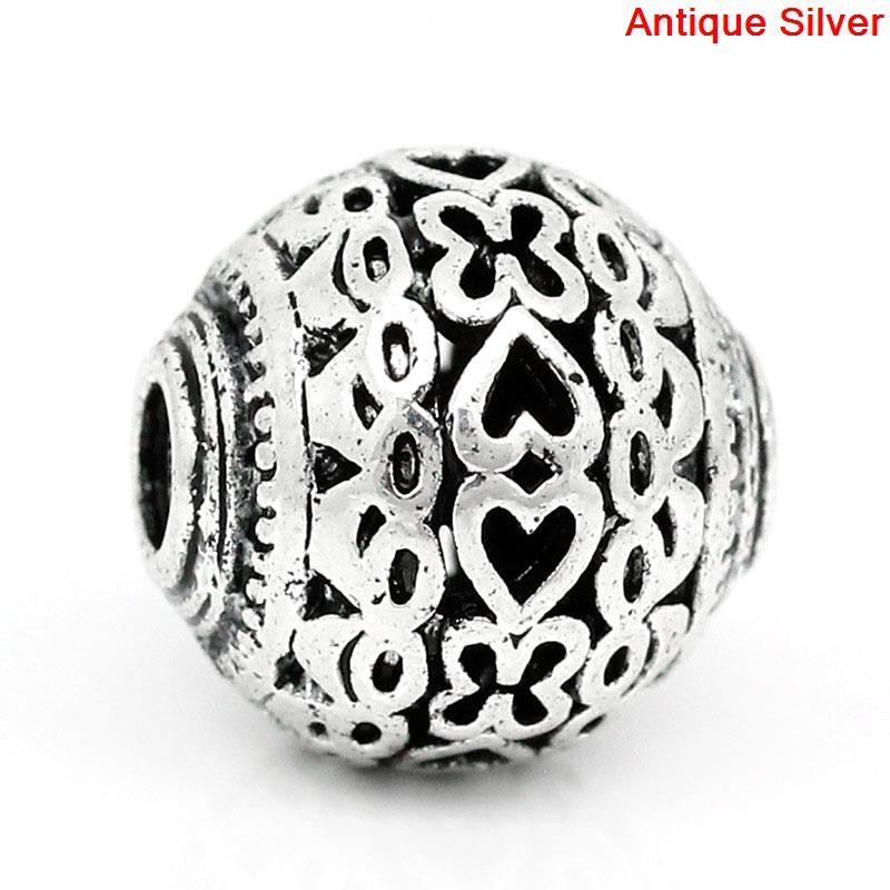 Home › New Arrivals › Sexy Sparkles 5 Pcs Silver Toned Round Flower/heart Pattern Hollow Spacer Bead 11mm Dia, Hole: Approx 1.7mm