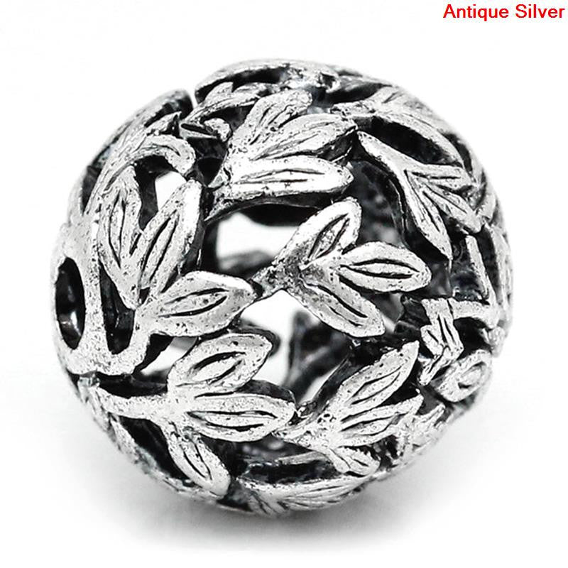 Home › New Arrivals › Sexy Sparkles 5 Pcs Silver Toned Round Leaf Pattern Carved Spacer Bead 14mm (4/8'') Dia, Hole: Approx 2.2mm