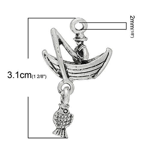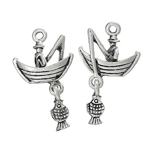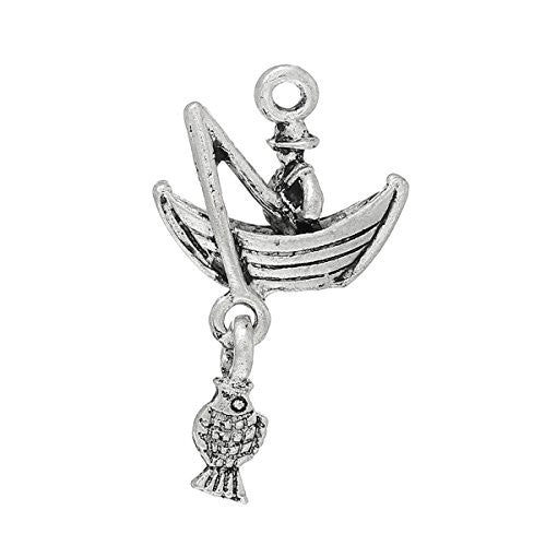 Home › Pendants › Fisherman Fishing in Boat Charm Pendant for Necklace