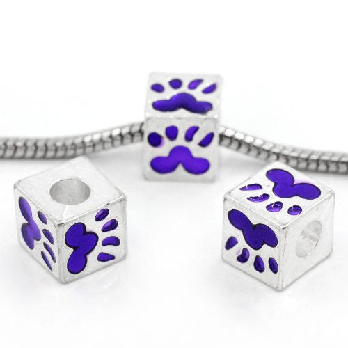 - Purple Enamel Dog Paw Charm Bead Spacer Compatible For Most European Snake Chain Bracelets